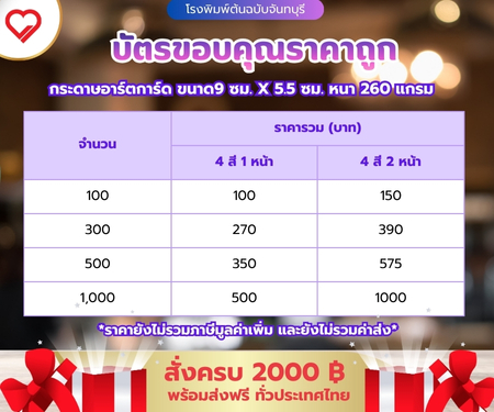 แนะนำ บัตรขอบคุณราคาถูก เหมาะกับธุรกิจขนาดเล็ก ถึงขนาดกลาง