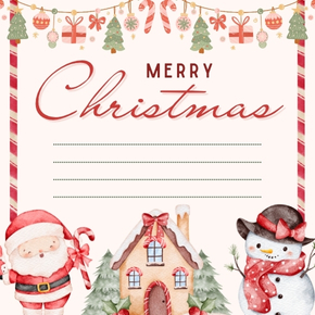 ดีไซน์สุดน่ารักที่รวมความสุขของฤดูหนาวไว้ครบ ทั้งหมี ซานต้า สโนว์แมน และของขวัญล้อมรอบคำว่า “Merry Christmas” ตัวใหญ่ด้านบน เหมาะสำหรับสื่อสารความสุขแบบอบอุ่นและเป็นมิตร
