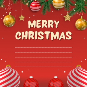 ดาวน์โหลดไฟล์การ์ดคริสมาสต์แบบที่ 24: สีแดงสดใสพร้อมลูกบอลประดับสุดรื่นเริง
